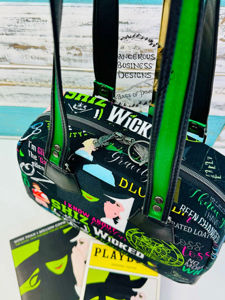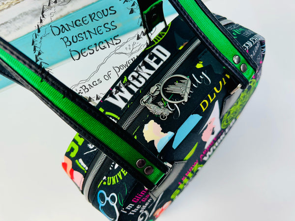 Features include 2 hand/shoulder straps, 2 zipper pulls, waterproof canvas lining, with 2 print slip pockets.